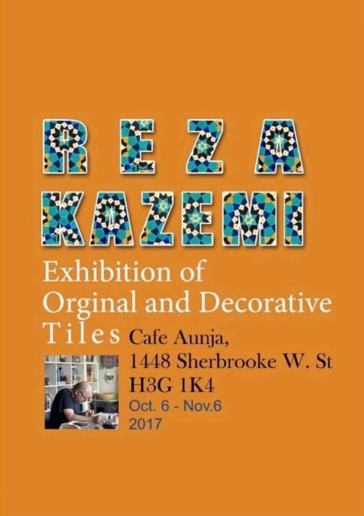 He has held six solo exhibitions (two in Iran-Tehran and four in Montreal) of his works so far, and has also successfully participated in a group exhibition at the IAAF Istanbul Festival.